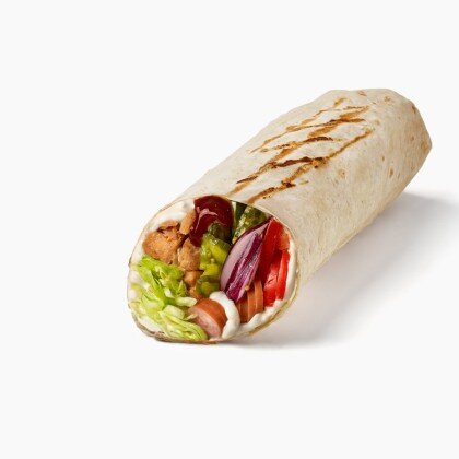 Филе куриное жареное, капуста свежая, томаты свежие, огурцы маринованные, лук красный, соус бургер, лаваш, соус на выбор
