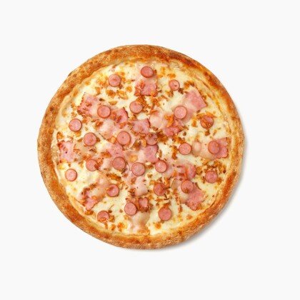 Воздушное или тонкое тесто на выбор, соус сливочный, сыр моцарелла, ветчина сочная, грибы шампиньоны свежие